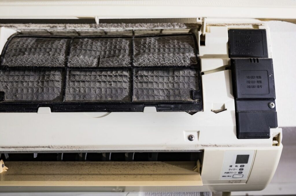 エアコンをつけた瞬間に、もわっとした嫌な臭いがする。