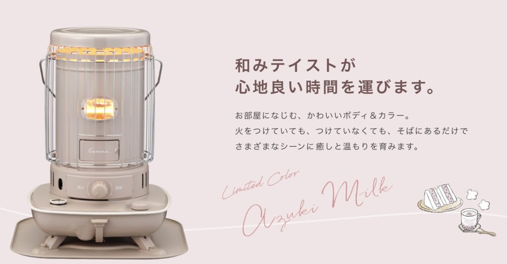 あずきミルクは、コロナの対流式石油ストーブ「SLシリーズ」の中でも、カラーそのものが主役になった特別仕様です。