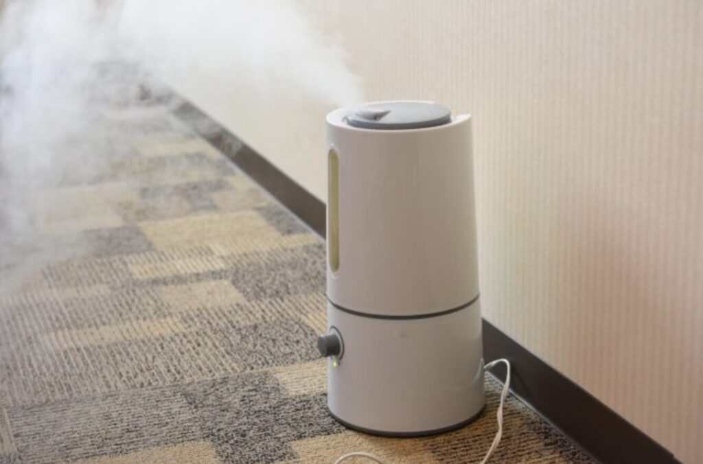 加湿器の出力を弱める、距離を離す。ファンヒーターを使っている場合は窓を少し開けて空気を入れ替える。換気扇を回すだけでも改善するケースが多い。