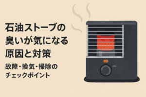 運転中や消火後に灯油のニオイが強く残る場合、燃焼筒の劣化や排気経路の詰まりが原因のことがあります。