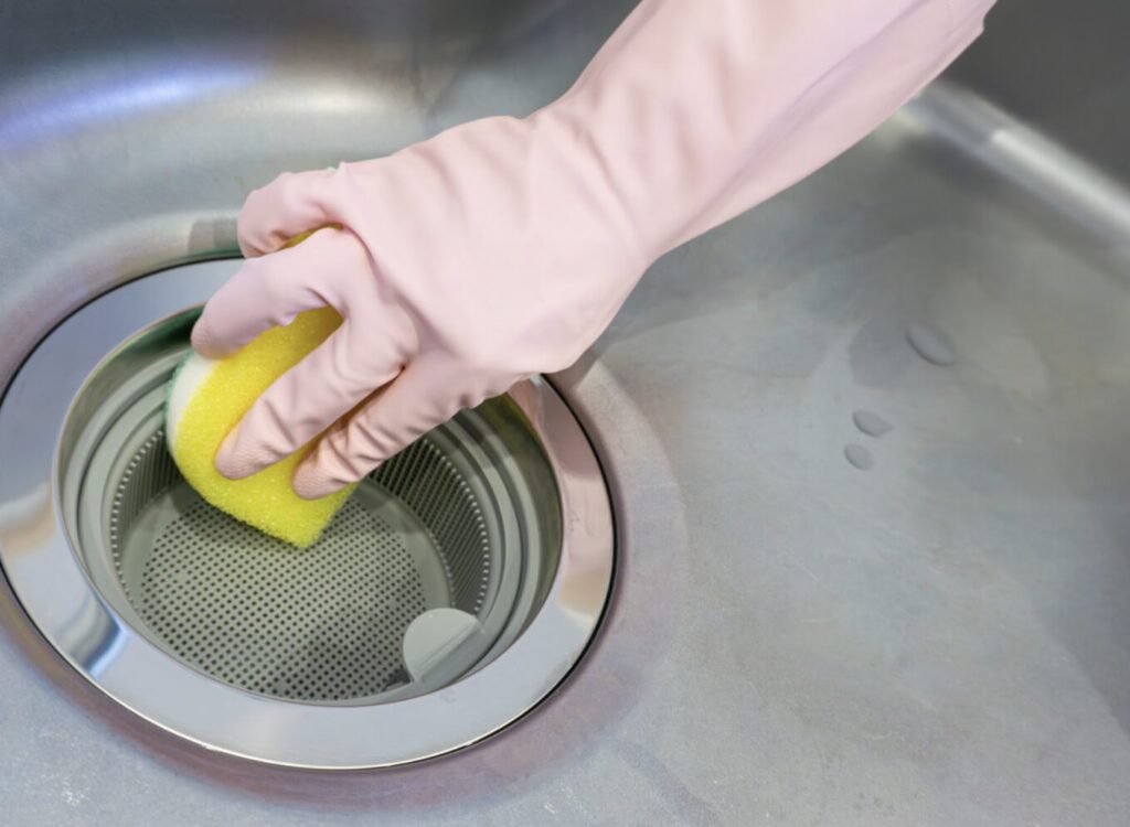 - シンクを洗うついでに:排水口カバーにスポンジをあてて軽くこする