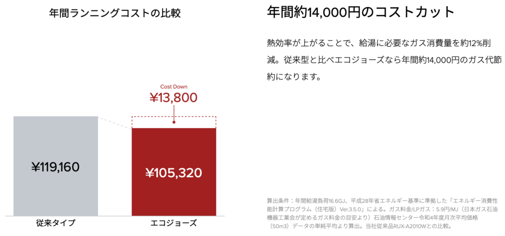 (出典:リンナイ公式HPより リンナイのエコジョーズが選ばれる理由)