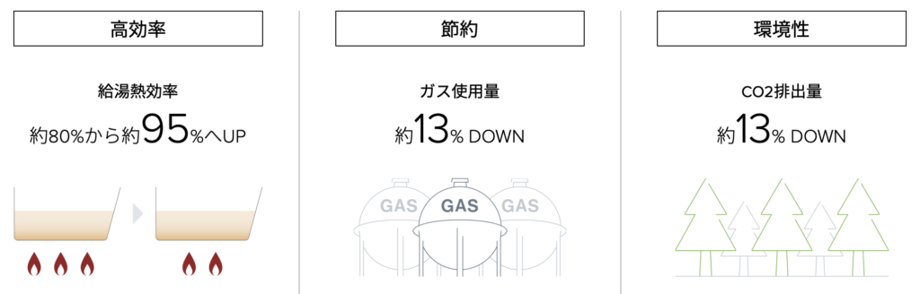 潜熱回収型給湯器は熱効率が高いぶん、家庭で得られる実感メリットもはっきりしています。