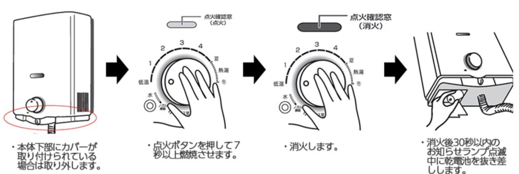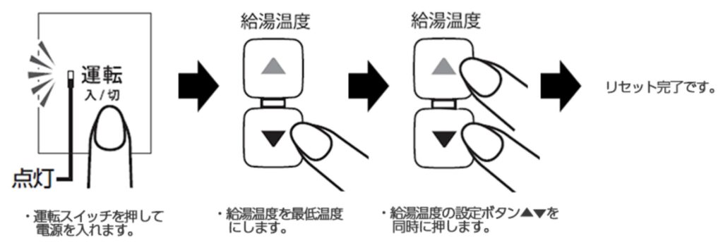 乾電池式湯沸器専用のユーザーリセット操作 を行うことで、