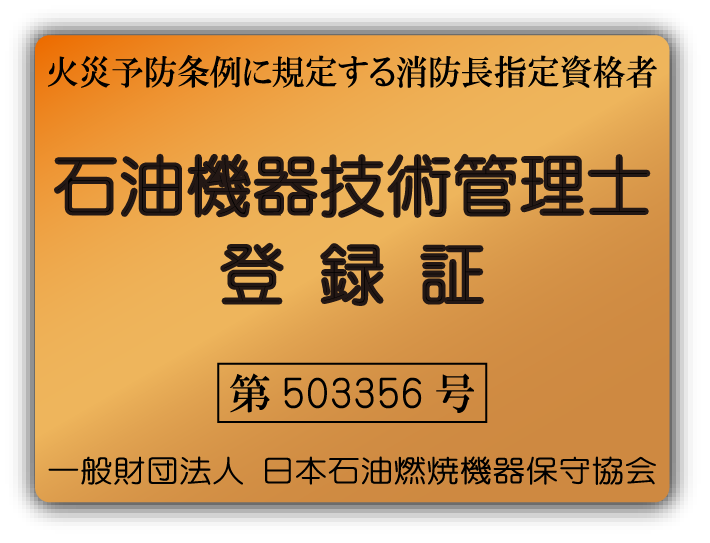 「石油機器技術管理士」は、石油燃焼機器の保守・点検に関する専門資格です。